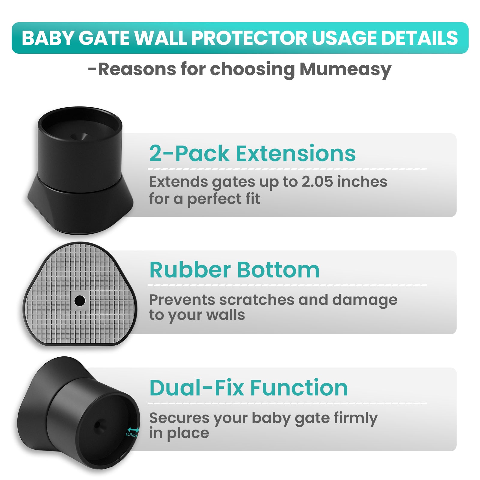 • PERFECT FIT EXTENSION: Baby Gate Wall Protector Extender 1.96 inch, each wall cup measures 2.36 x 2.36 inches. Please make sure the pressure baby gate you purchased fits the wall cups, check your doorway or baseboard for compatibility ensure optimal wall protection and stability