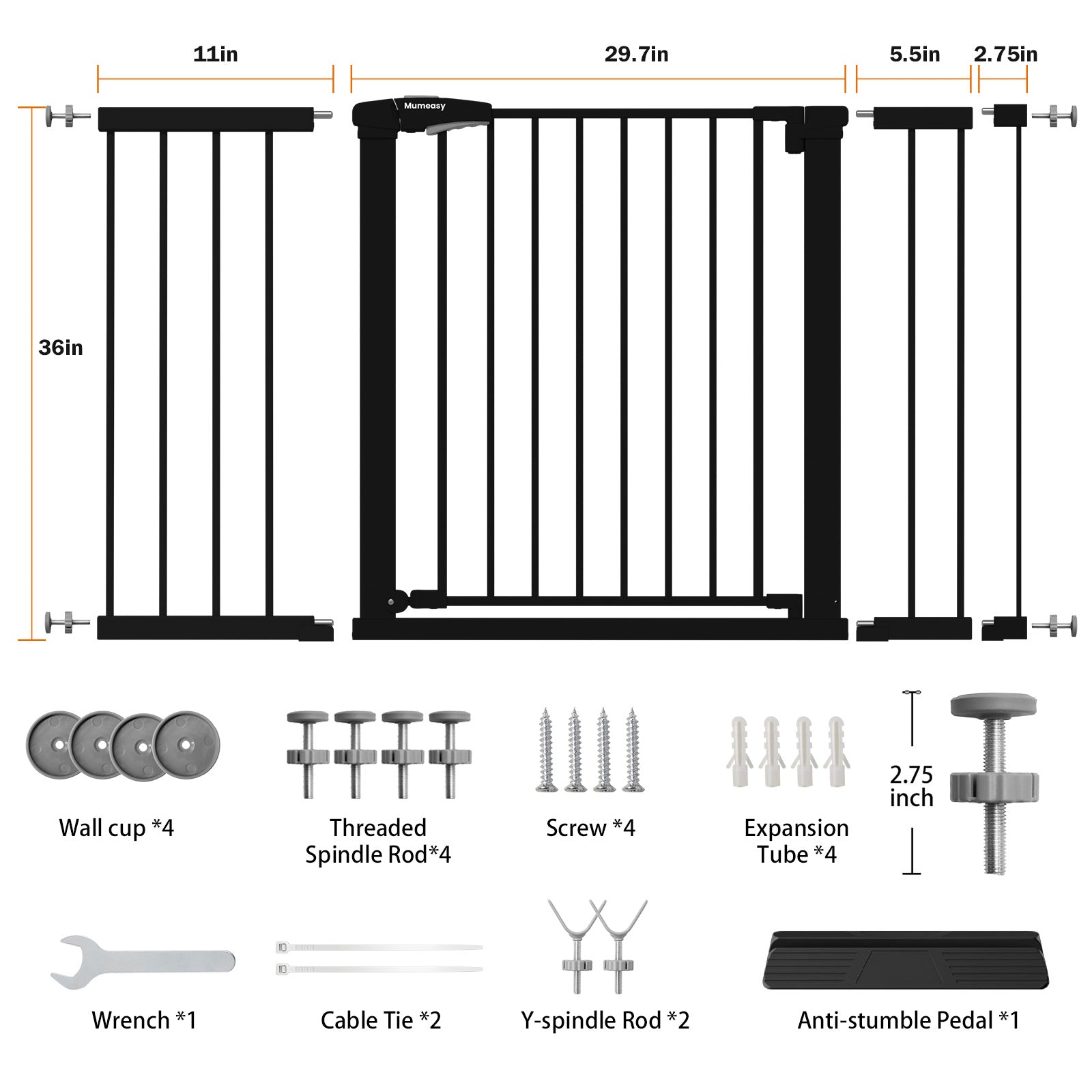 - Versatile Y-Bolt Baby Gate with Anti-Stumble Pedal: Designed for flexible use throughout the home, this extra long baby gate includes Y-shaped bolts for round banisters and wall cups for flat walls or baseboards, providing a secure, no-drill installation that won’t damage surfaces. The anti-stumble pedal creates a flush step to reduce tripping hazards for toddlers, seniors, and nighttime use. Perfect as a toddler safety gate, baby gate for doorways, stair gate, or pet/dog gate for hallways, apartments, rental homes, and any multi-level living spaces.