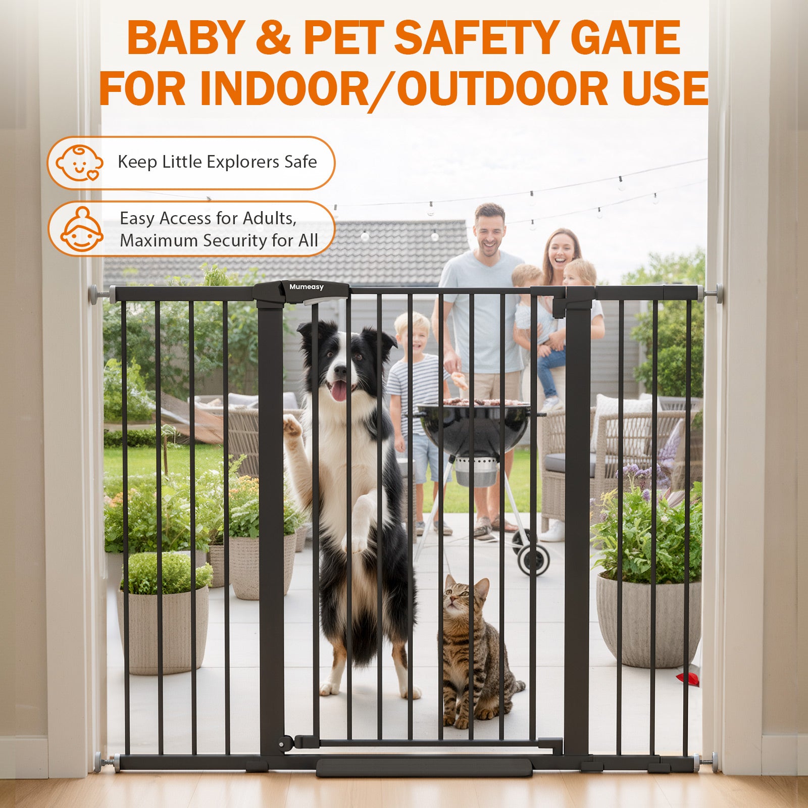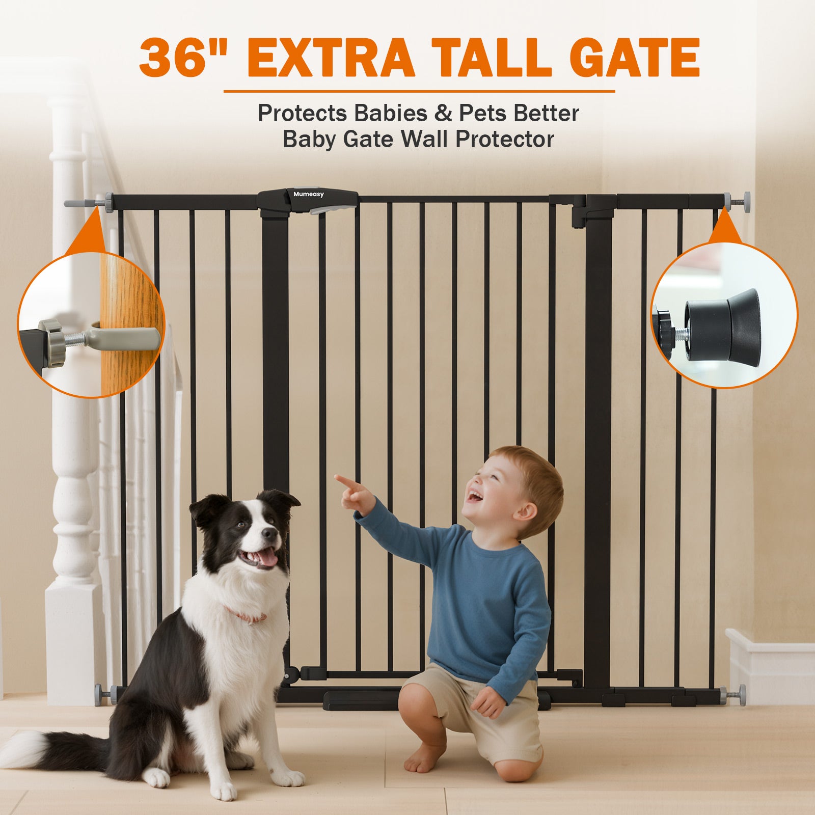 - Durable Baby & Pet Gate with Reliable Support & Warranty: Engineered with high-strength metal materials, this sturdy baby gate and dog/pet gate resists bumps and pressure from energetic toddlers and active pets, staying firm without tipping or loosening. Perfect as a pet gate for stairs, doorway safety gate, or indoor baby gate, this durable long baby gate includes a 3-year warranty and responsive 24/7 customer support for peace of mind.