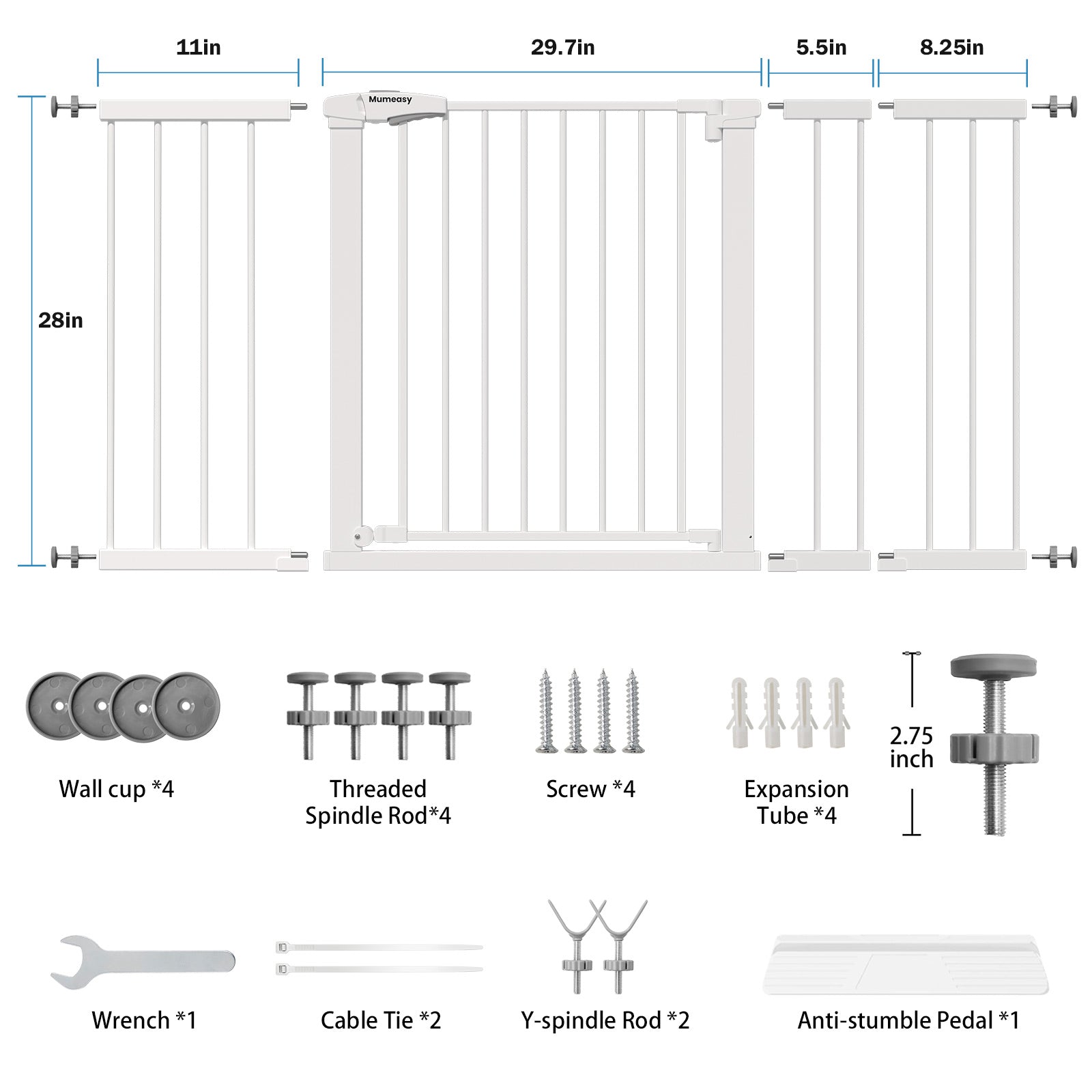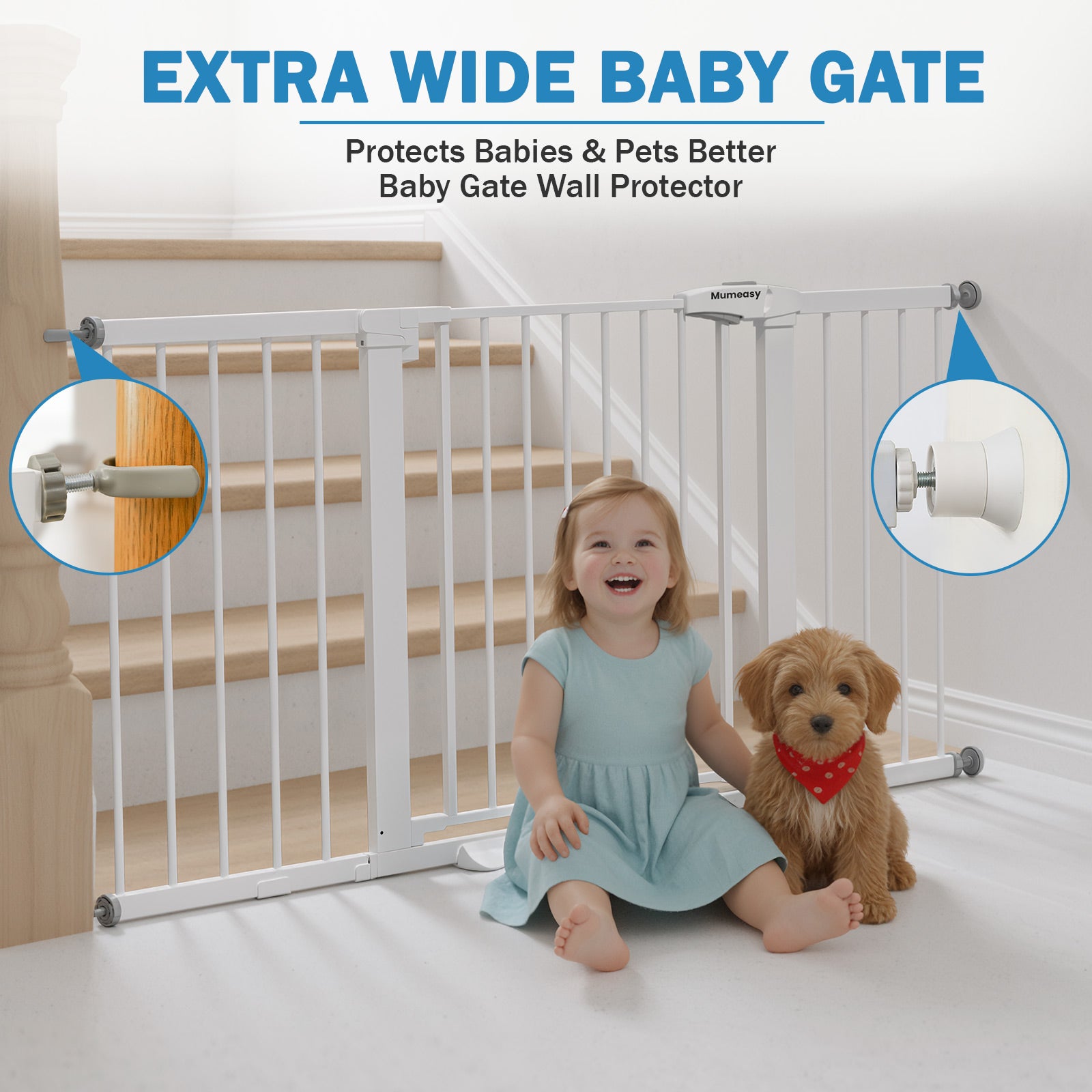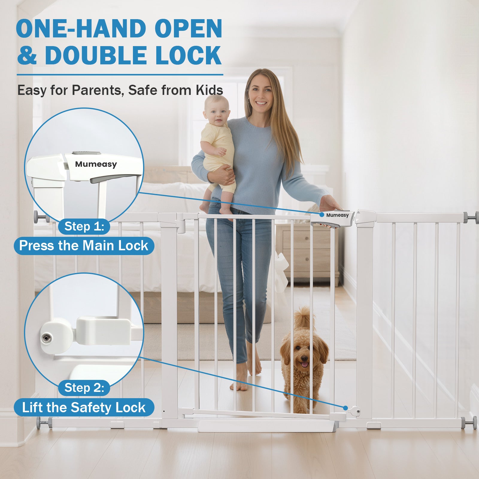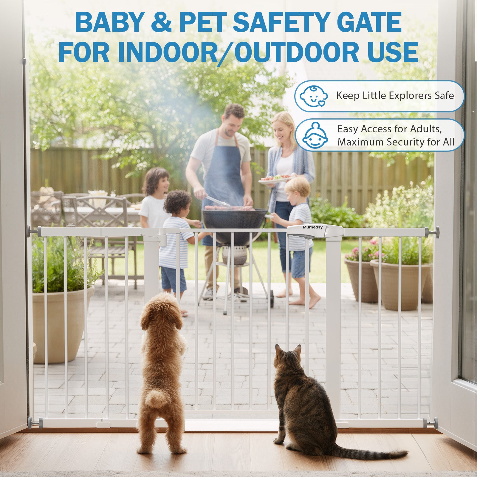 - Durable Metal Construction with 3-Year Warranty: Built from strong metal, this baby and dog safety gate withstands impacts from active toddlers and energetic pets. Suitable as a dog gate for stairs, pet gate for doorways, or indoor child safety gate. Backed by Mumeasy’s 3-year warranty and responsive customer support.