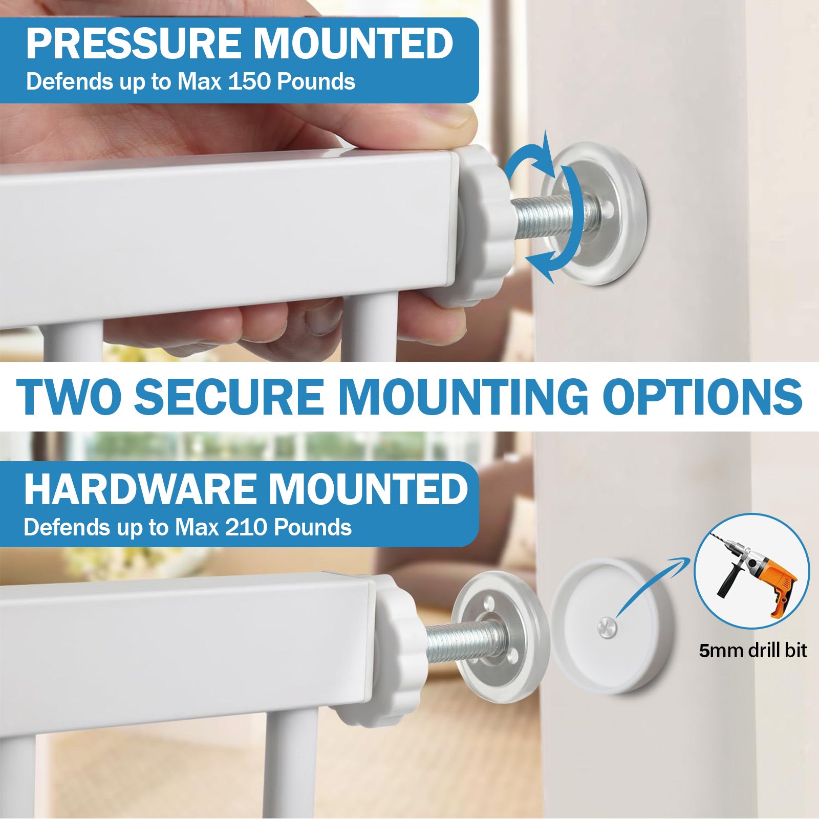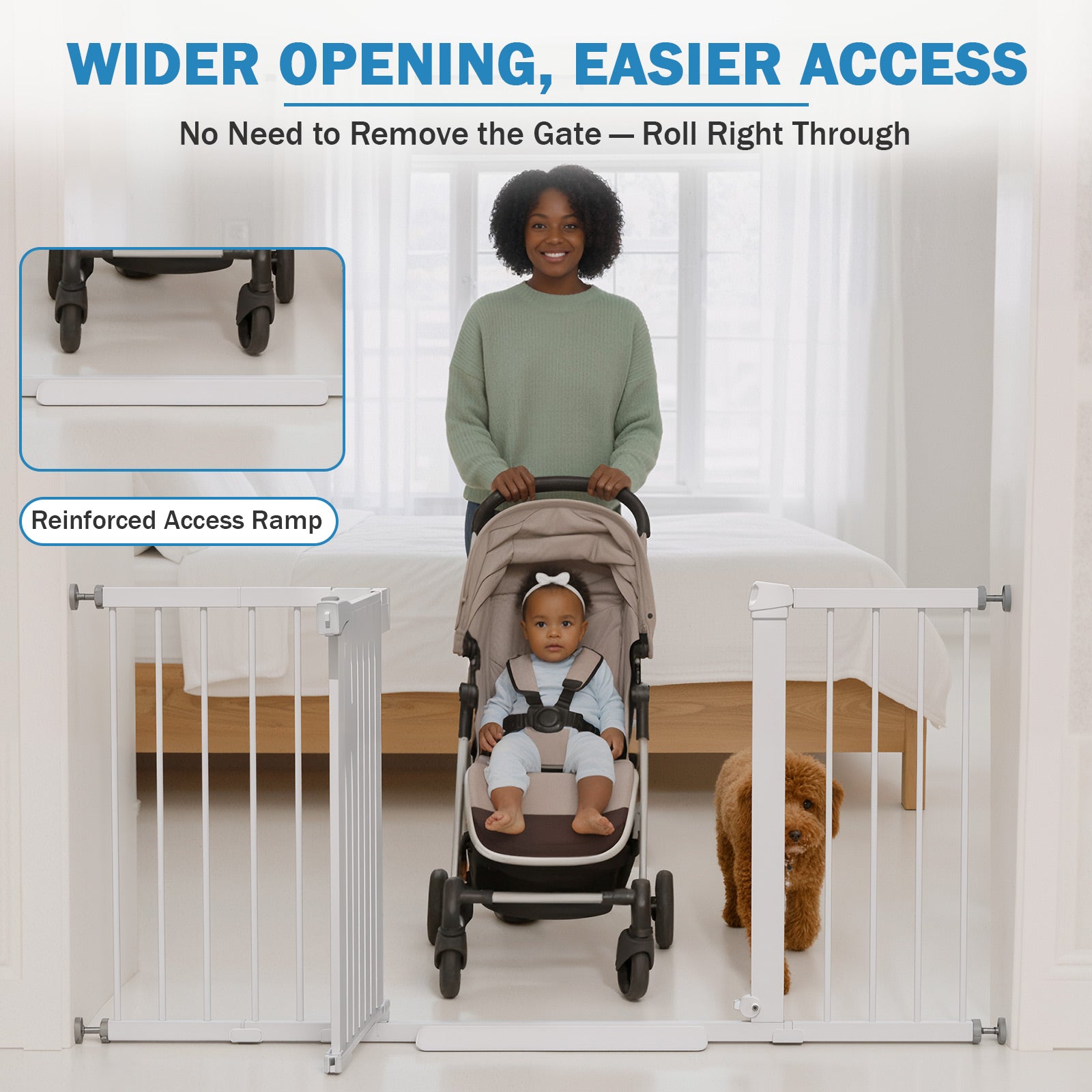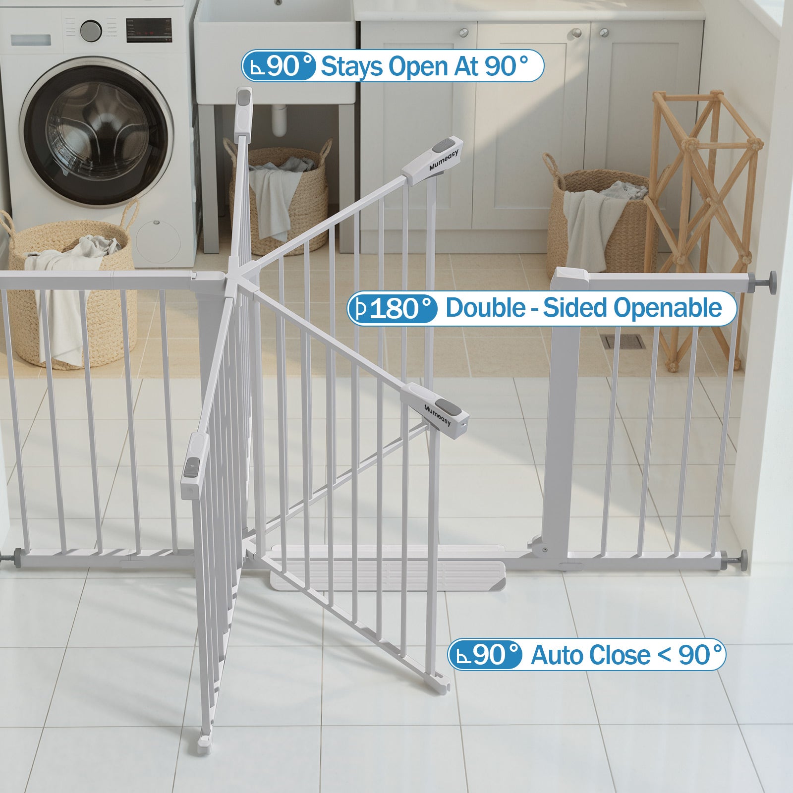 - Child-Safe Double Lock, Auto-Close & Two-Way Swing: The upgraded double-lock system keeps curious toddlers from opening the gate, while adults can easily operate it with one hand. The auto-close feature engages when the gate opens under 90°, and the two-way swing offers smooth, convenient movement.