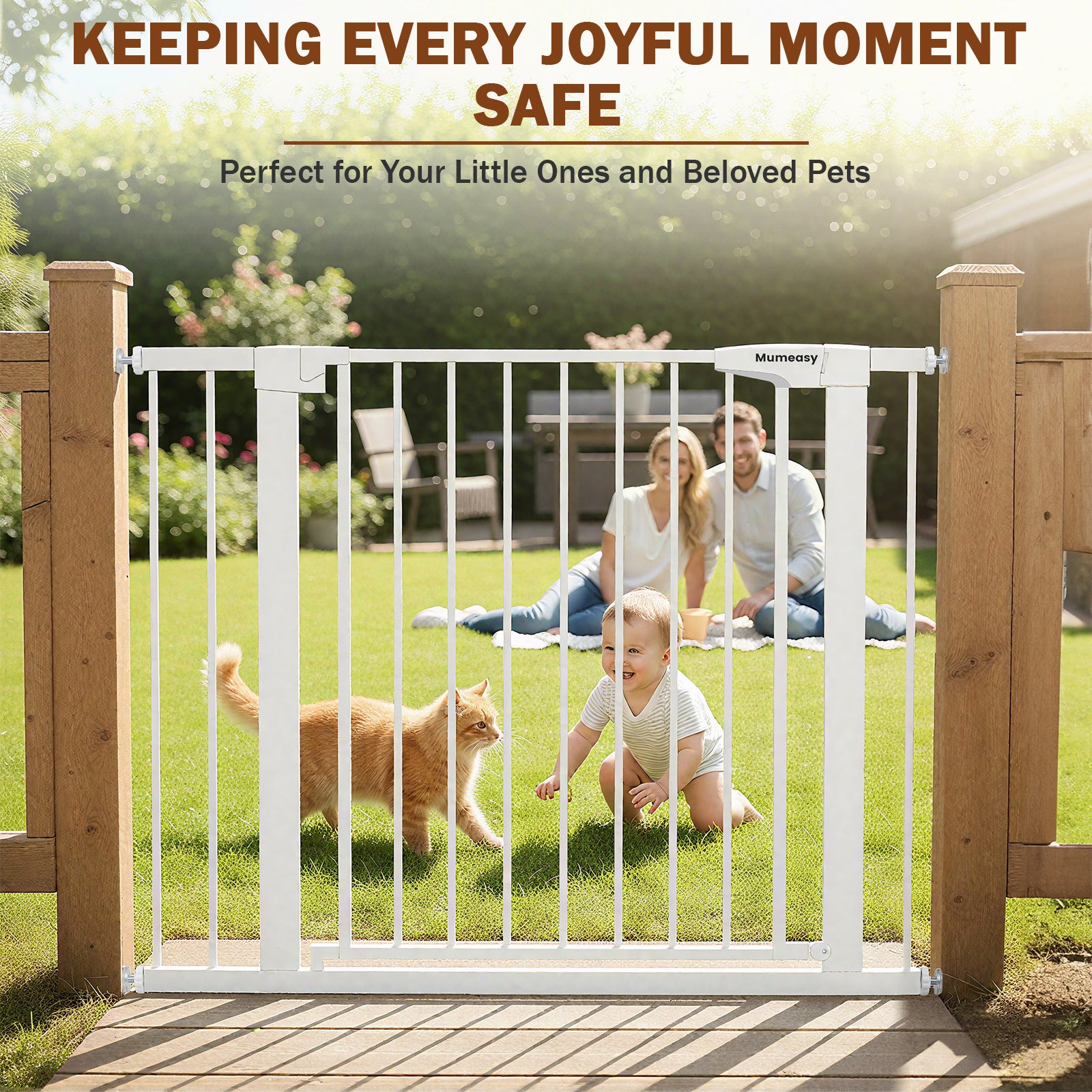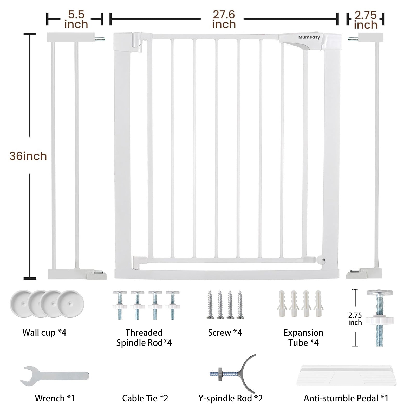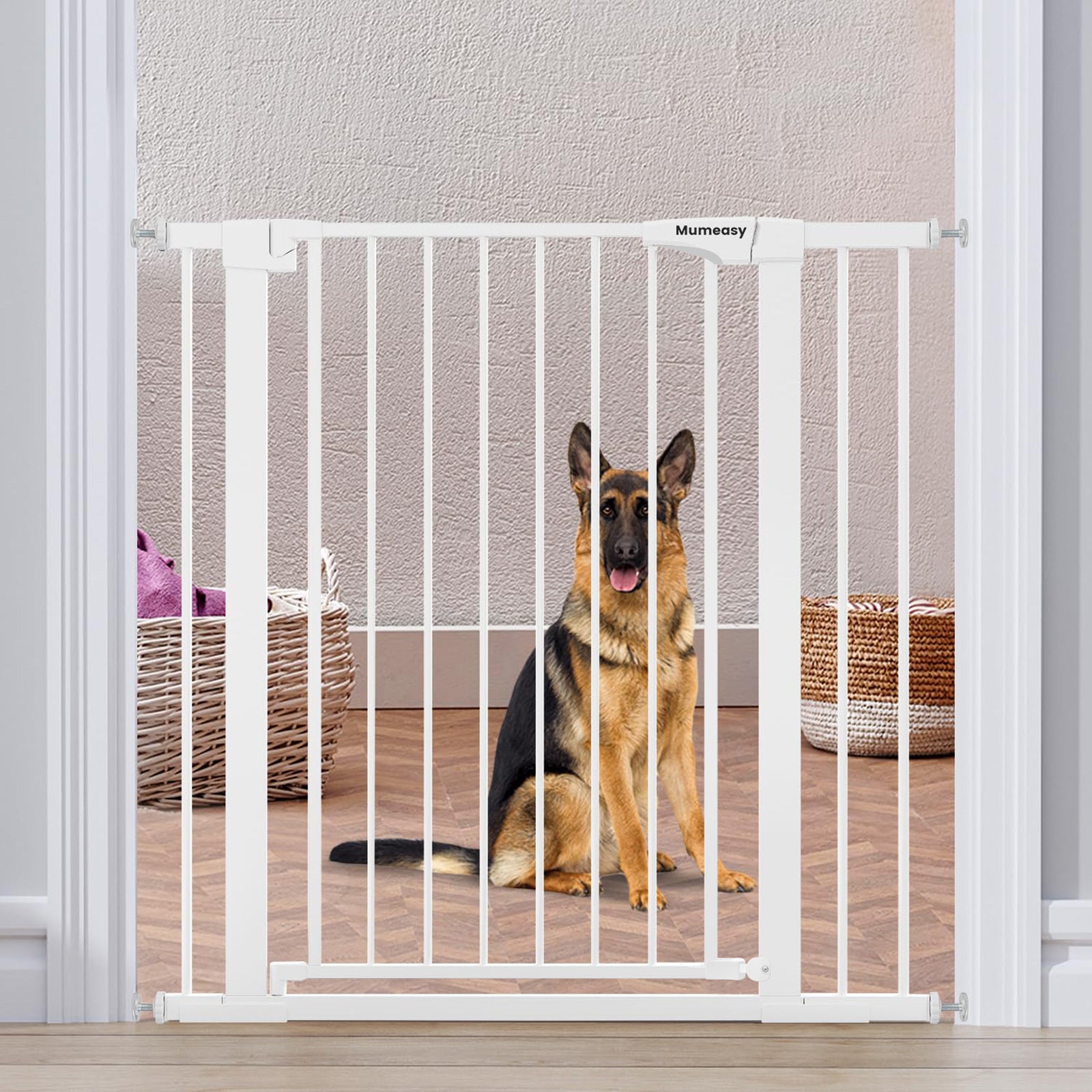 • Mumeasy 36" High Extra Tall Dog Gate, 29.6"-40.5" Wide Pressure Mounted Tall Baby Gate for Dog, Auto Close Pet Gate with Door for Stairs,Doorways,House,White