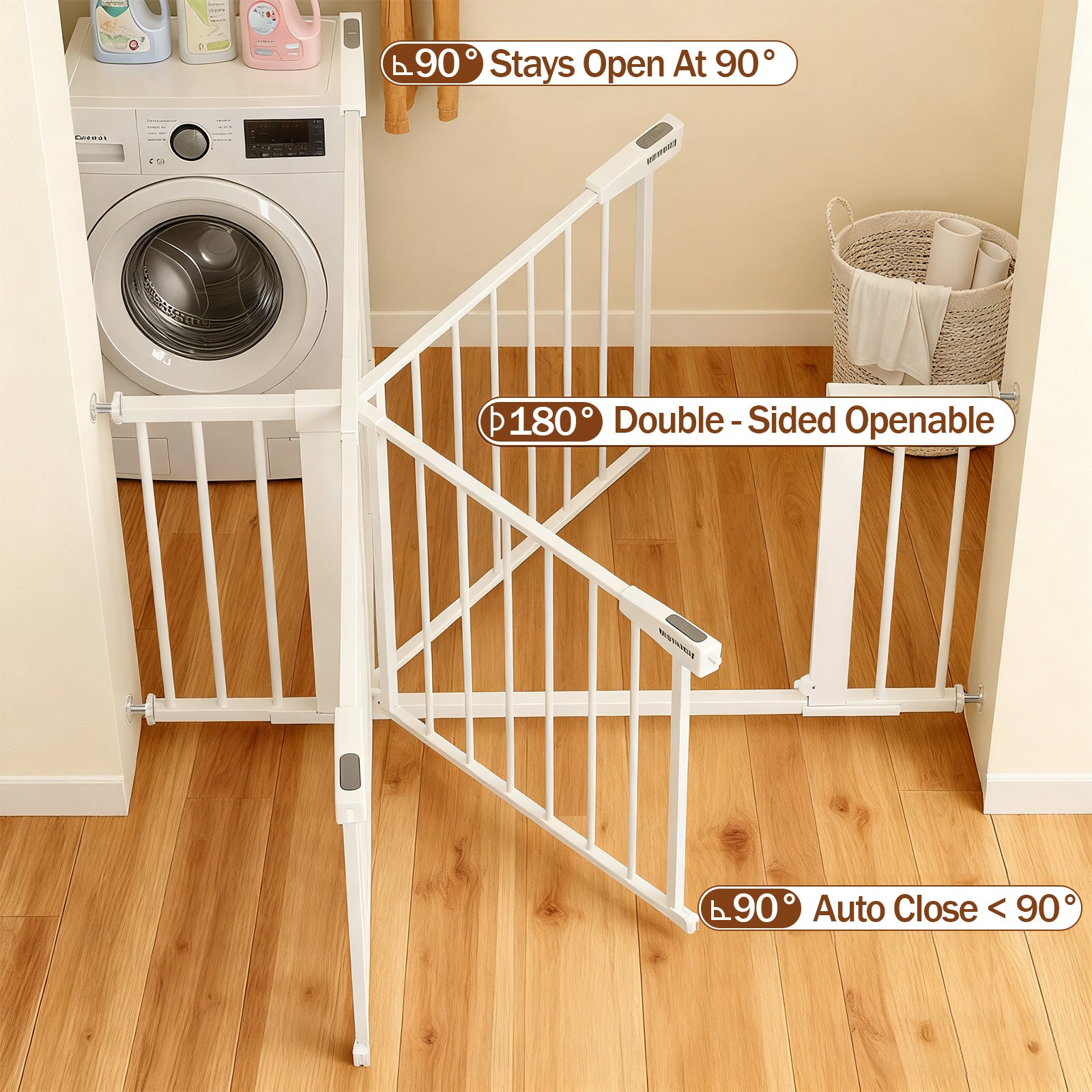 • Extra Tall: The dog gate stands 36 inches tall, taller than normal 28 inches gate, to avoid your pet jumps over or baby climbs over, and it fits 29.6"-40.5" openings.