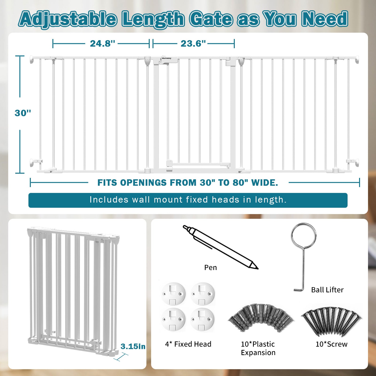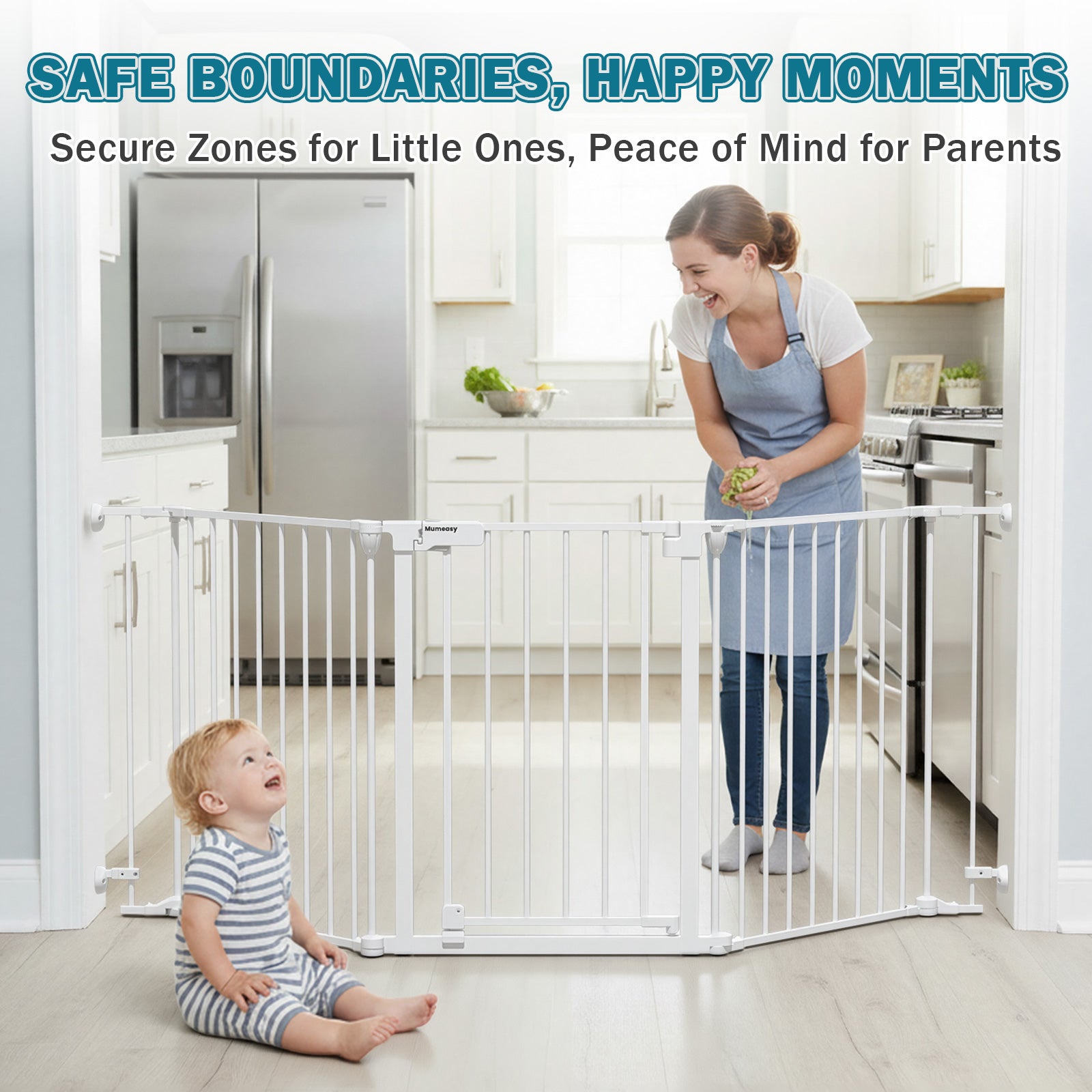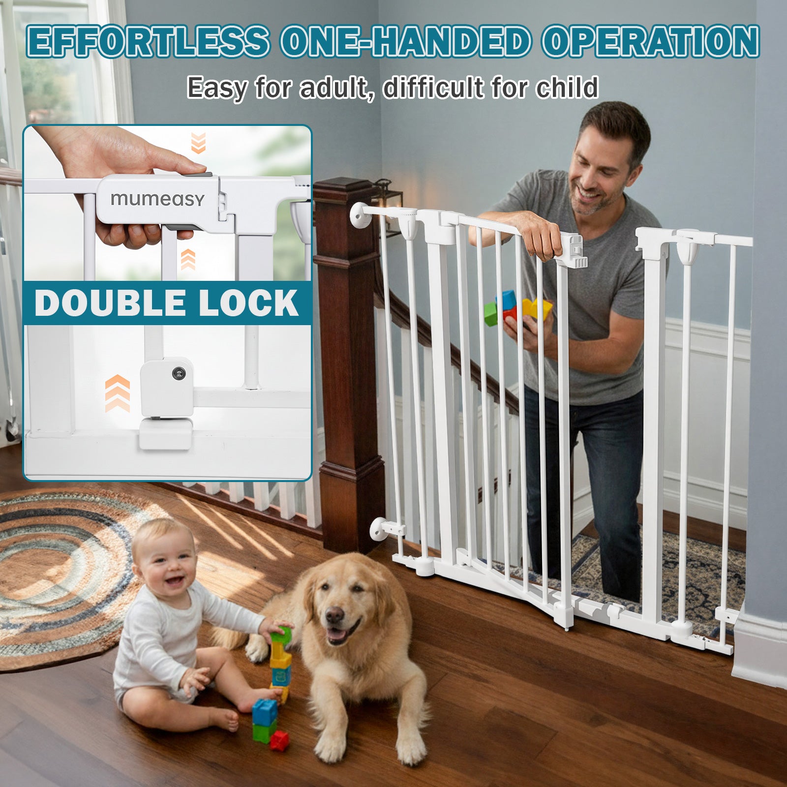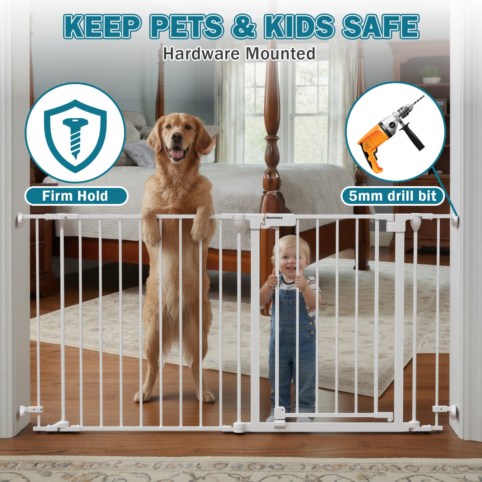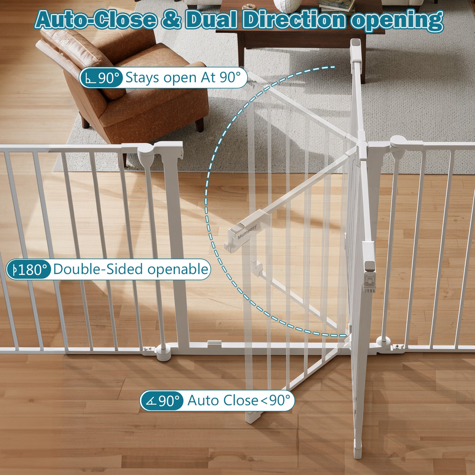 - 【Reliable Support & 3-Year Warranty】This child safety gate comes with a 3-year warranty for peace of mind. Mumeasy after-service support team is available 24/7 to assist with installation questions or product concerns. The Mumeasy safety gate provides safe, reliable protection for toddlers, pets, and family members in stairways, hallways, doorways, indoors, and outdoors.