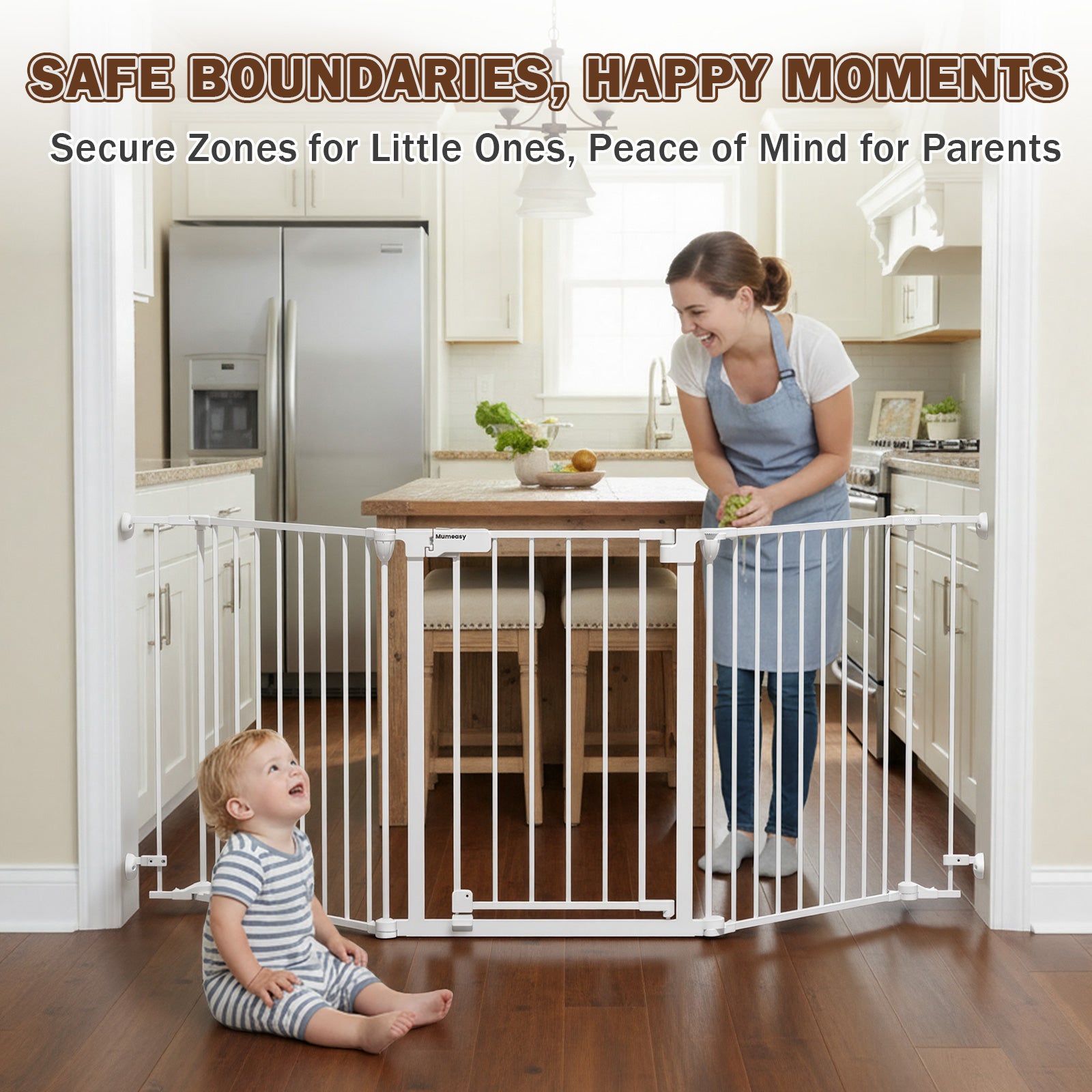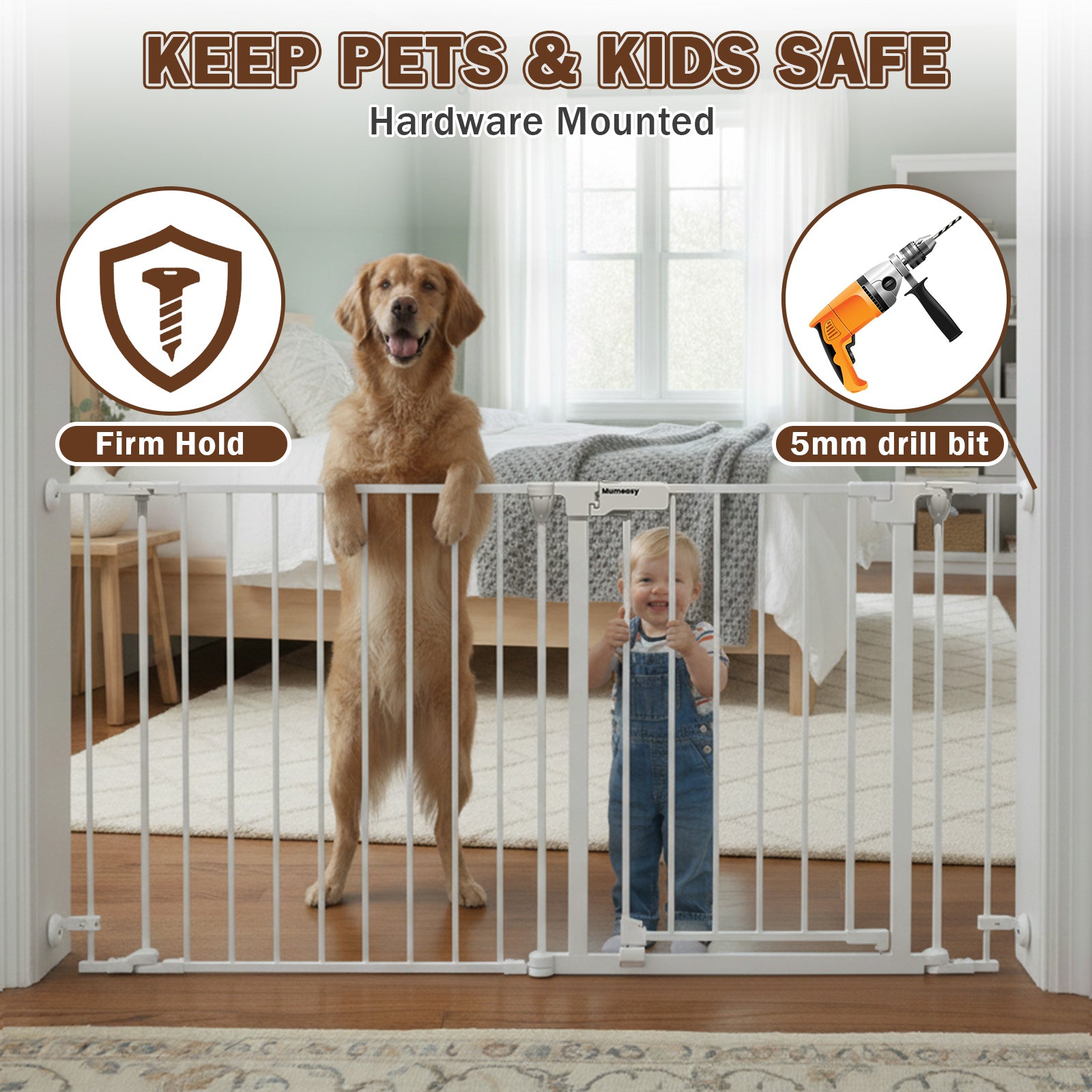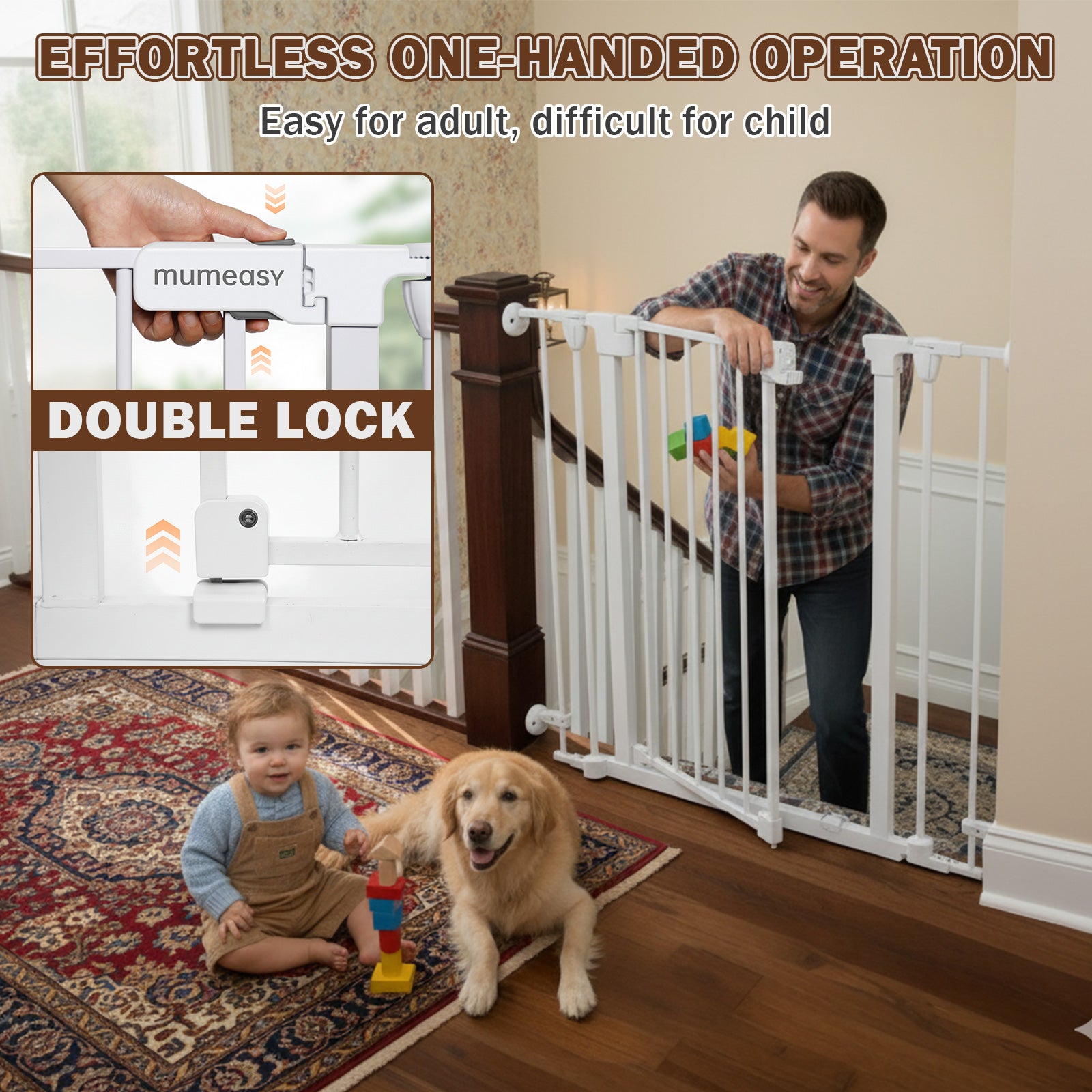 - 【Reliable Support & 3-Year Warranty】This child safety gate comes with a 3-year warranty for peace of mind. Mumeasy after-service support team is available 24/7 to assist with installation questions or product concerns. The Mumeasy safety gate provides safe, reliable protection for toddlers, pets, and family members in stairways, hallways, doorways, indoors, and outdoors.