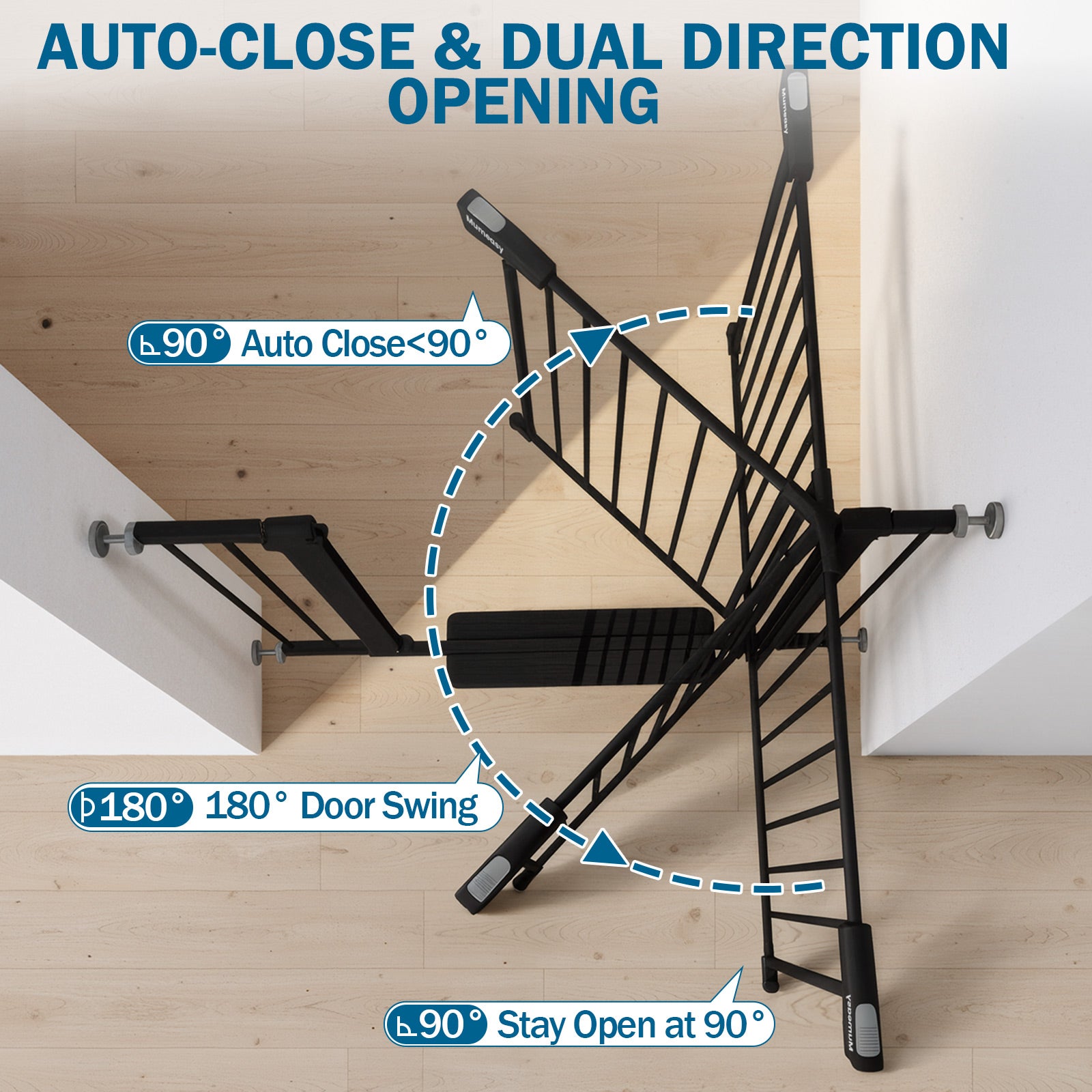 【Auto Close】Our safety gate swings both ways and features a anccessible ramp to reduce tripping hazards. This pet gate also auto-closes behind you, creating a secure and convenient barrier for children and small pets.