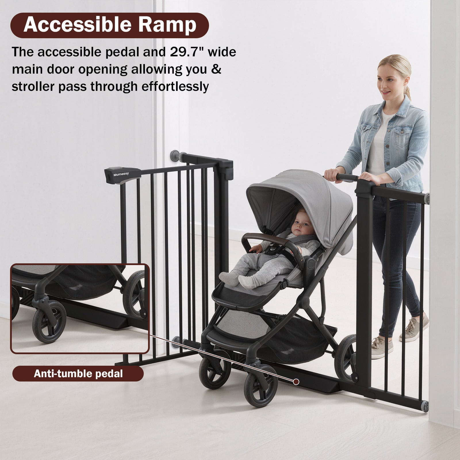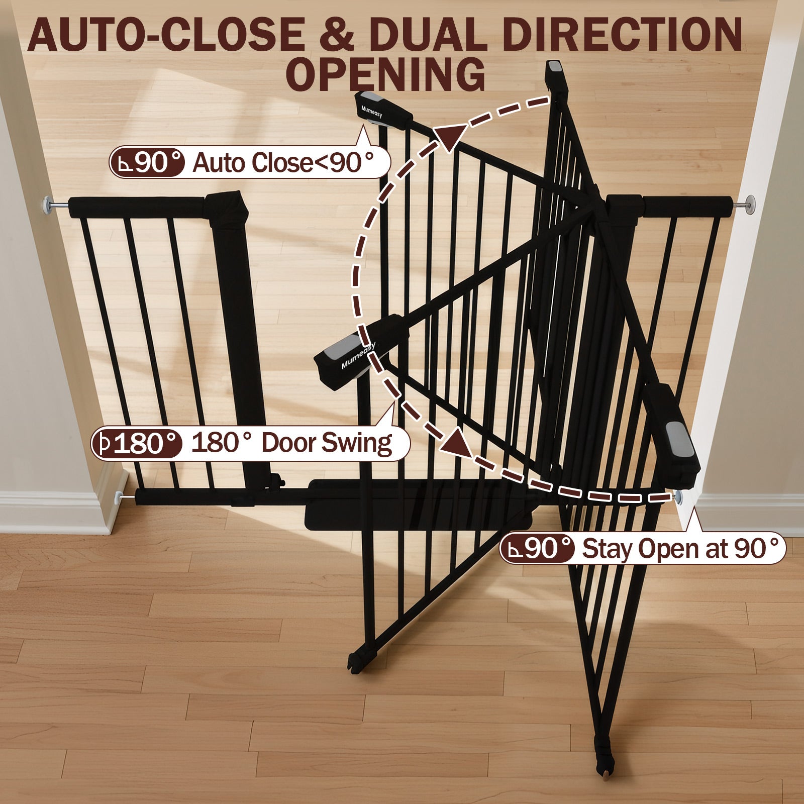 【Mumeasy Baby Gate】Made from premium, heavy-duty steel, this baby gate is durable, sturdy, and built to handle daily use in homes with active kids and pets. Mumeasy is committed to delivering the best customer experience. If you have any questions or need assistance with this baby gate, feel free to contact us — we're here to help quickly and professionally.