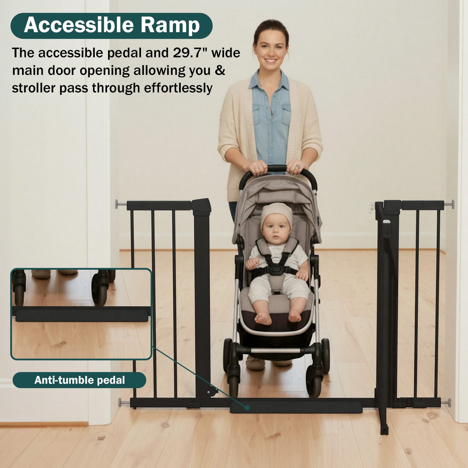 【Versatile Child & Pet Gate】Functions as both a tall baby gate and dog gate, making it ideal for doorways, indoor spaces, and staircases. Trusted as a child gate and extra wide baby gate for comprehensive home safety, blending seamlessly with any decor while protecting your family.