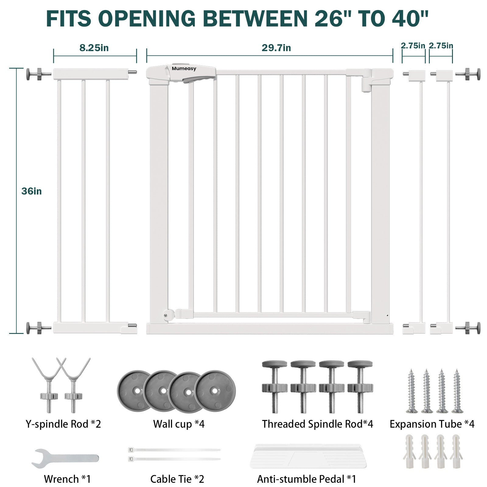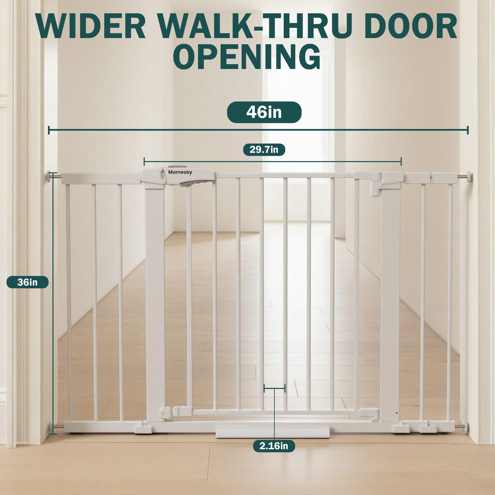 【Extra Tall and Wide】This baby gate stands 36 inches—taller than other gates—Ideal for large pets and toddlers. Expands from 29.7" to 46" wide, perfect for wider hallways, doorways, kitchens, and stairs.