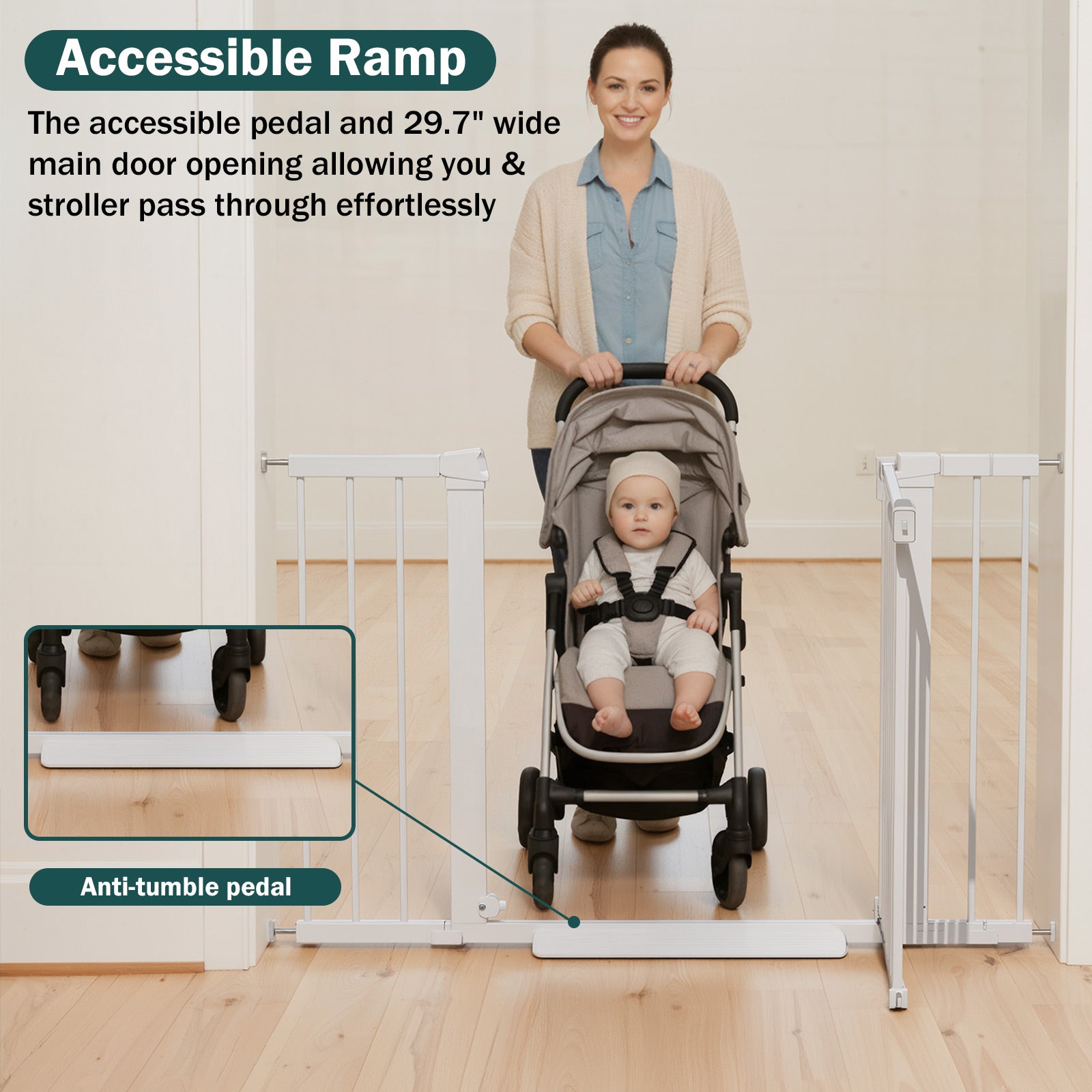 【Versatile Child & Pet Gate】Functions as both a tall baby gate and dog gate, making it ideal for doorways, indoor spaces, and staircases. Trusted as a child gate and extra wide baby gate for comprehensive home safety, blending seamlessly with any decor while protecting your family.