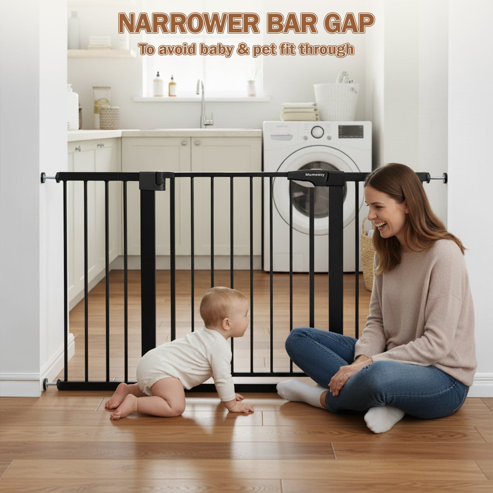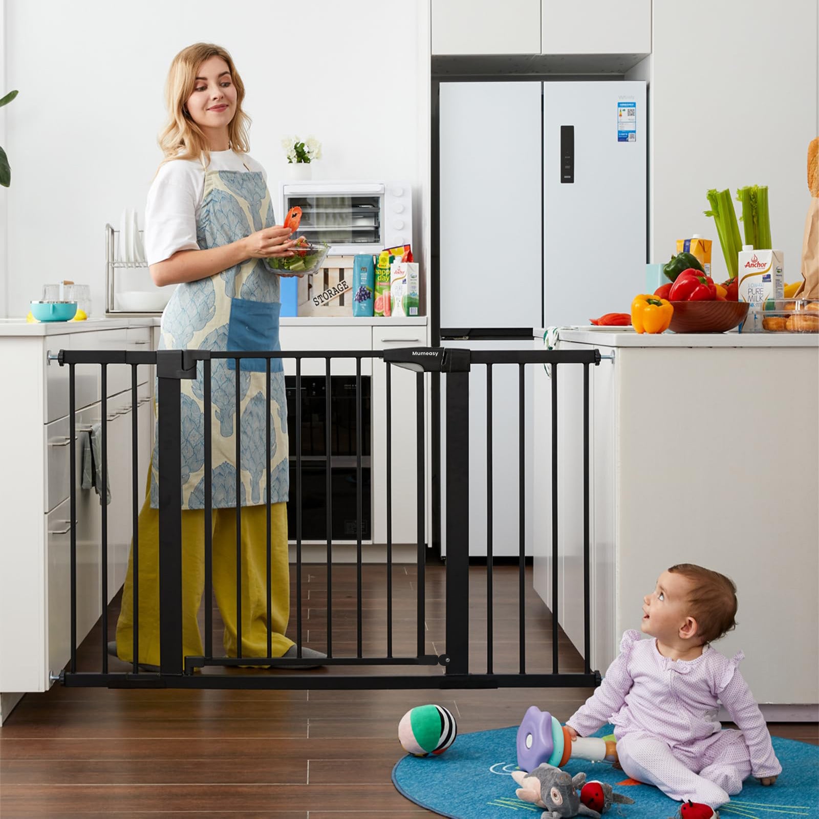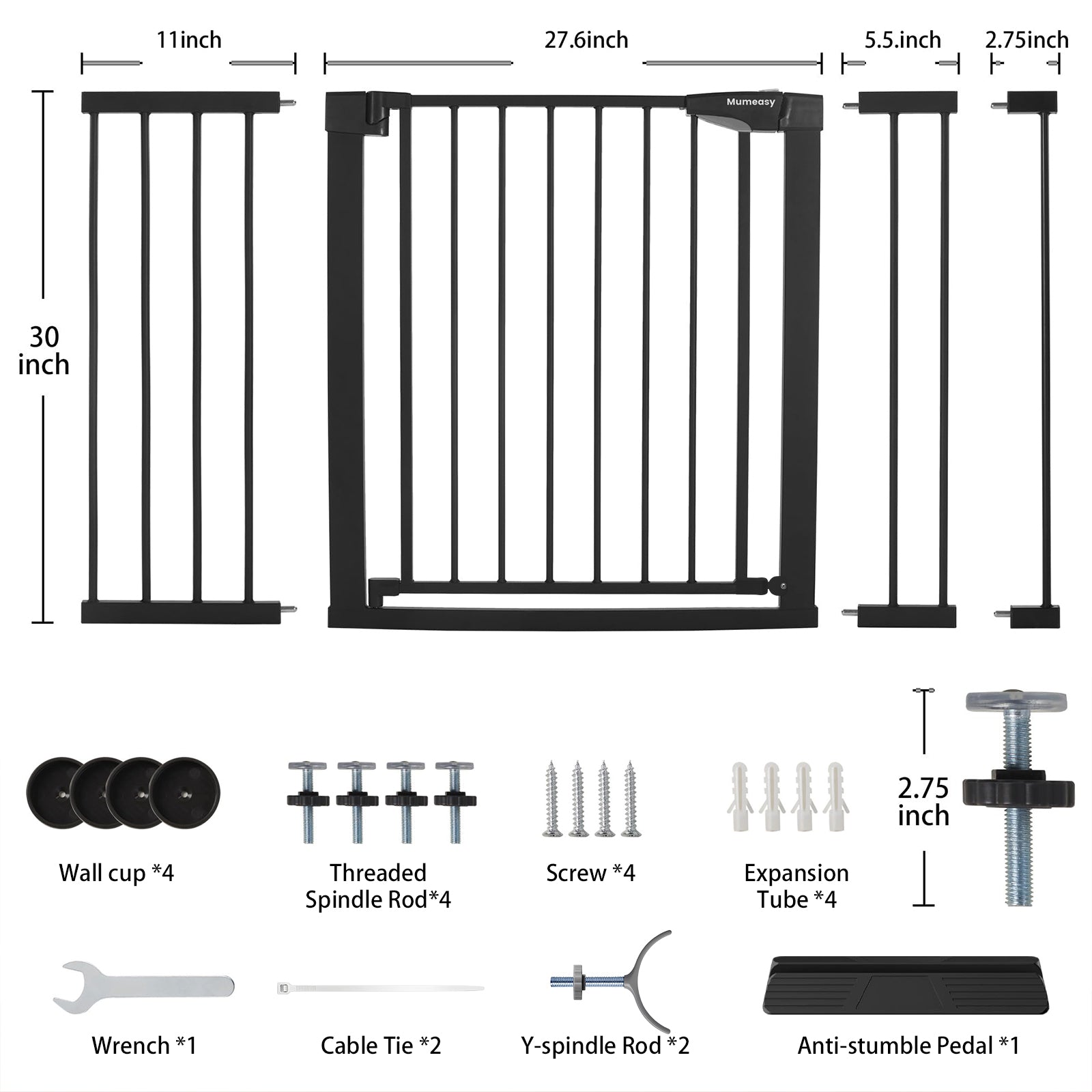 - What You Get: Mumeasy Baby gate, 1* 2.75 inch &1* 5.5 inch extension kits, welcome guide, our worry-free 18-month warranty, and friendly customer service.